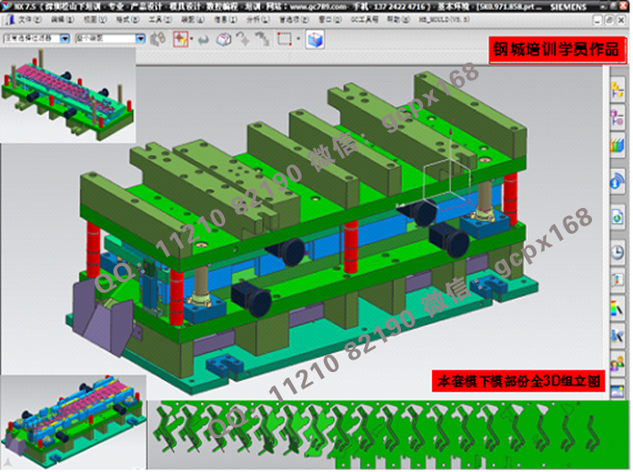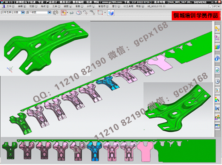(11) 連續模設計實操:綜合理論知識,運用實際的模具設計流程(各類圖面處理>模架繪制>細部結構設計>零件圖繪制>出圖),真正實現與工廠的無縫結合;